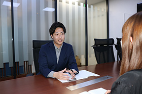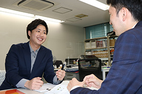 メーカーの販促担当や広告代理店の方と商談。クライアントの課題や「こうしたい」という想いを引き出し、自社で提案できるツールや仕掛けの方向性を打ち合わせします。